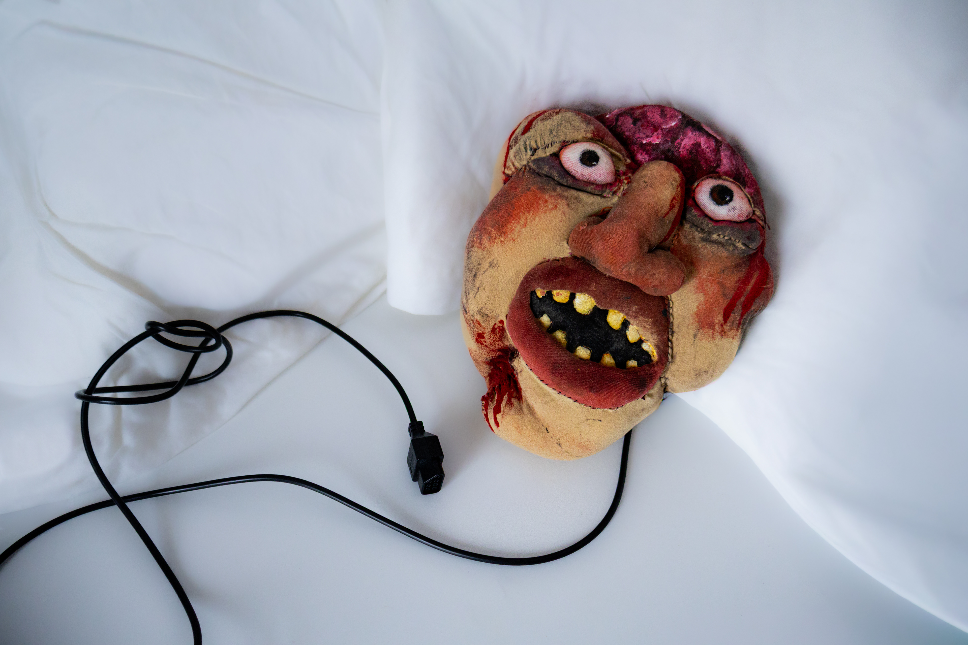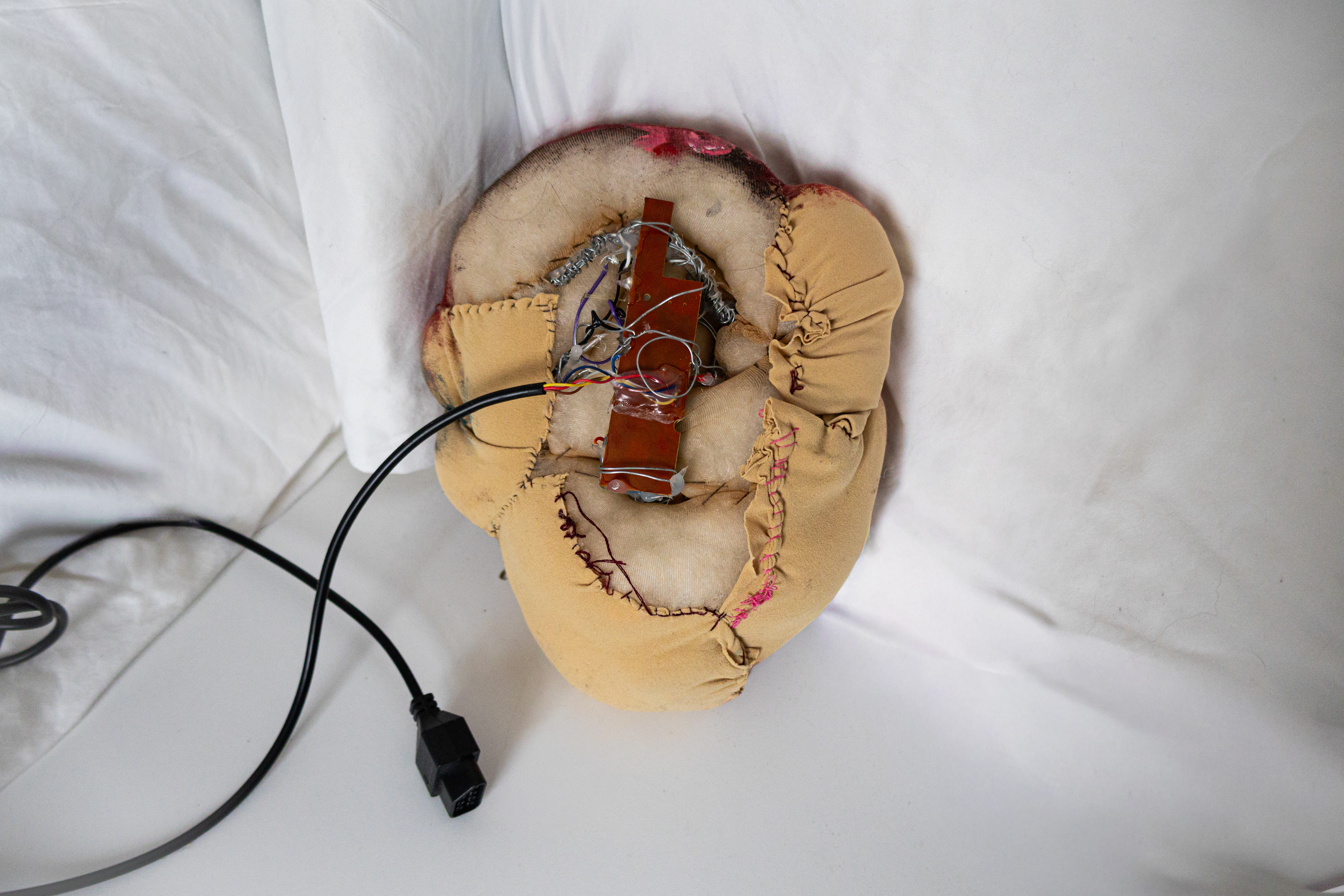 Nintendo 64 game controller reconstructed with button components in the face.